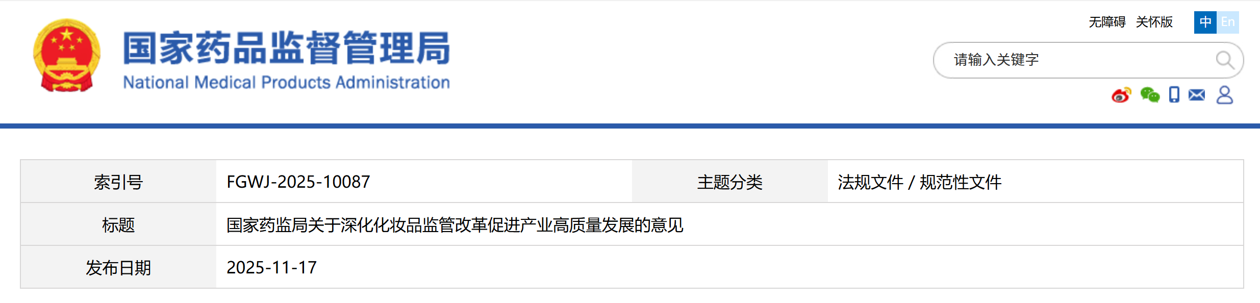 国家药监局关于深化化妆品监管改革促进产业高质量发展的意见